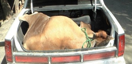 Se trata de Inginio Antonio Taveras de 48 años de edad, quien se dirigía a la ciudad de Santiago en el momento de su detención, en un carro marca Lincoln blanco en donde encontraron los animales, entre estos una vaca en el baúl, dos en el asiento trasero y un becerro en el motor del vehículo.