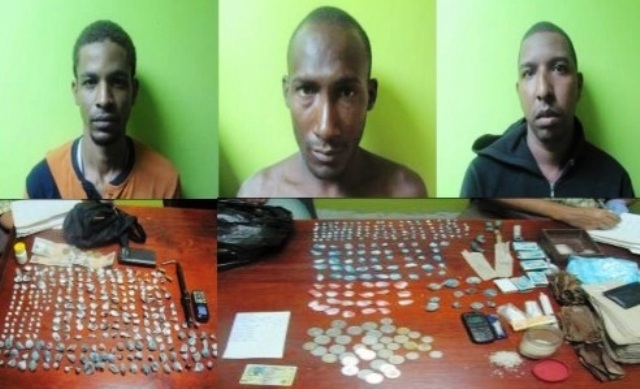 A Martínez Martínez se le ocupó 47 porciones de cocaína y un celular en un operativo realizado en la calle primera del sector padre Granero, en tanto que a Peralta se le ocupo en la calle Juan Laffit de Los Cocos se le ocupó 87 porciones de cocaína, un celular y 110 pesos en efectivo, mientras a Paredes y García se les ocupó en general unas 131 porciones de cocaína con un peso aproximado de 129.2 gramos de cocaína en la calle seis de Los Callejones.